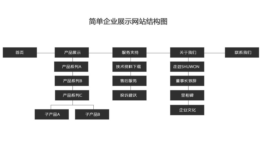 一個(gè)簡(jiǎn)單的企業(yè)展示網(wǎng)站建設(shè)地圖(網(wǎng)站欄目安排)如下: