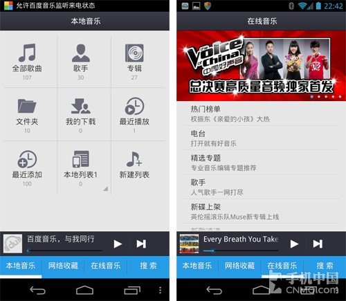 隨著智能手機(jī)的網(wǎng)絡(luò)功能越來越豐富,人們對(duì)于智能手機(jī)的要求也越來越多,像手機(jī)音樂播放器,單一的音樂播放功能已經(jīng)無法滿足用戶了,用戶除了音樂播放功能外,也需要音樂獲取的途徑,目前的音樂播放器也都有了在線音樂的功能,其中比較知名的便是百度音樂。
