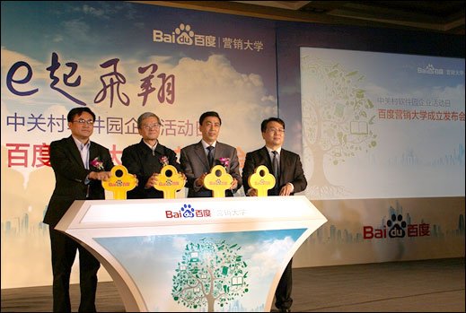 12月14日消息,“百度營銷大學(xué)”宣布正式成立,這是國內(nèi)第一家系統(tǒng)提供互聯(lián)網(wǎng)營銷教育、培訓(xùn)及人才發(fā)展服務(wù)的機構(gòu)。該大學(xué)由百度公司創(chuàng)建,聯(lián)合各大高校及社會培訓(xùn)機構(gòu)優(yōu)勢資源合作發(fā)展,致力于建立互聯(lián)網(wǎng)營銷人才培養(yǎng)的新機制,解決長久以來困擾行業(yè)發(fā)展的營銷人才匱乏難題。中國電子商務(wù)協(xié)會理事長張會生、中關(guān)村軟件園總經(jīng)理劉克峰、百度副總裁鄭子斌等,共同出席了百度營銷大學(xué)的成立發(fā)布儀式。