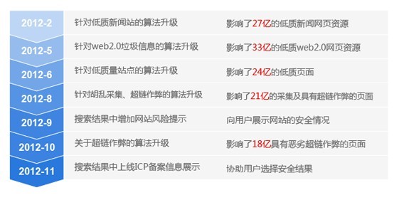 在所有的PC端網站中,低質網站占比高達75%,其中采集泛濫。因此,希望站長在13年加大原創內容的建設力度。百度站長平臺在2013年重點推出星火計劃,將重點扶持原創,幫助優質站點,通過原創資源引入以及高級工具扶持原創站點,給原創的優質內容更多展現,讓原創網站獲得更大的發展空間。